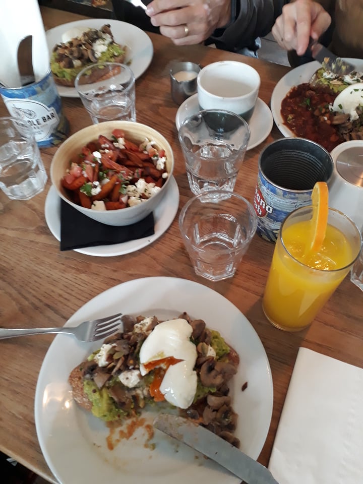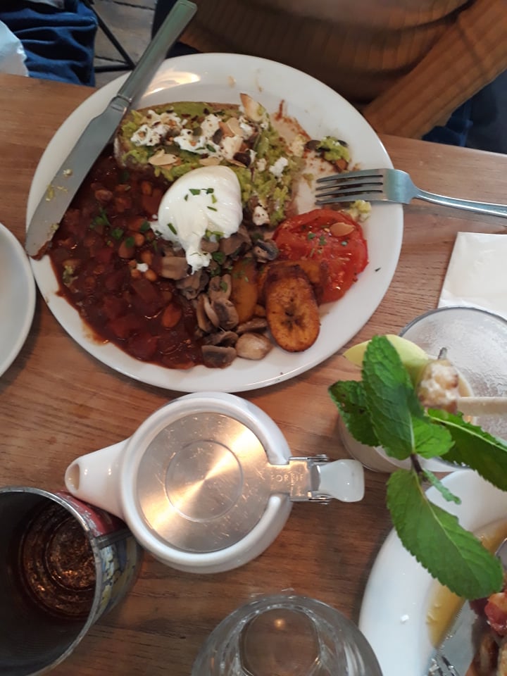 My dad and I had avocado on toast, which was bliss. Added to that indomitable pair were red pepper houmous, creamy feta, delicious garlic mushroom, a dribbly poached egg and a liberal sprinkling of almonds and seeds. Each bite was a different smorgasbord of flavours and textures, and I spent the rest of the day in a happy well-fed glow.