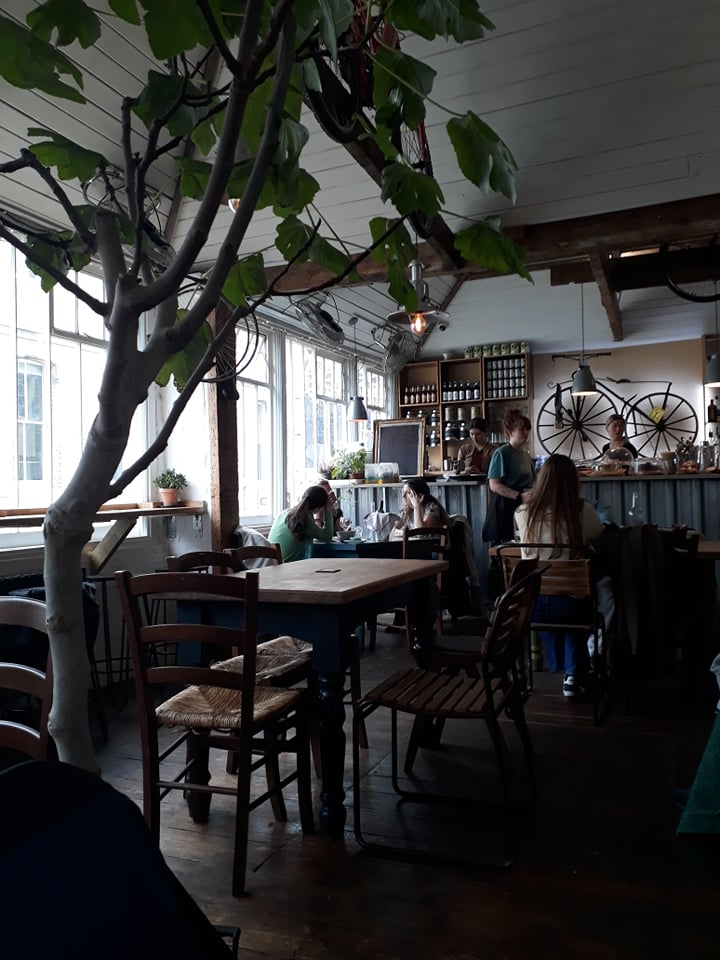 Situated above a bike shop down a quiet side road in the bustling centre of Oxford, the popularity of The Handle Bar is betrayed by the long queue which winds down the stairs, past the racks of bikes and out into the street. Make your way inside (hint: booking recommended) and you’ll see huge windows running the length of a room filled with plants, antique bikes and comfortable, lived-in furniture. Tucked away on the first floor, with friendly service and conversation filling the air, this is a café to get seriously comfortable in. You’ll come for lunch and still be there when the tapas and cocktails come out in the evening.